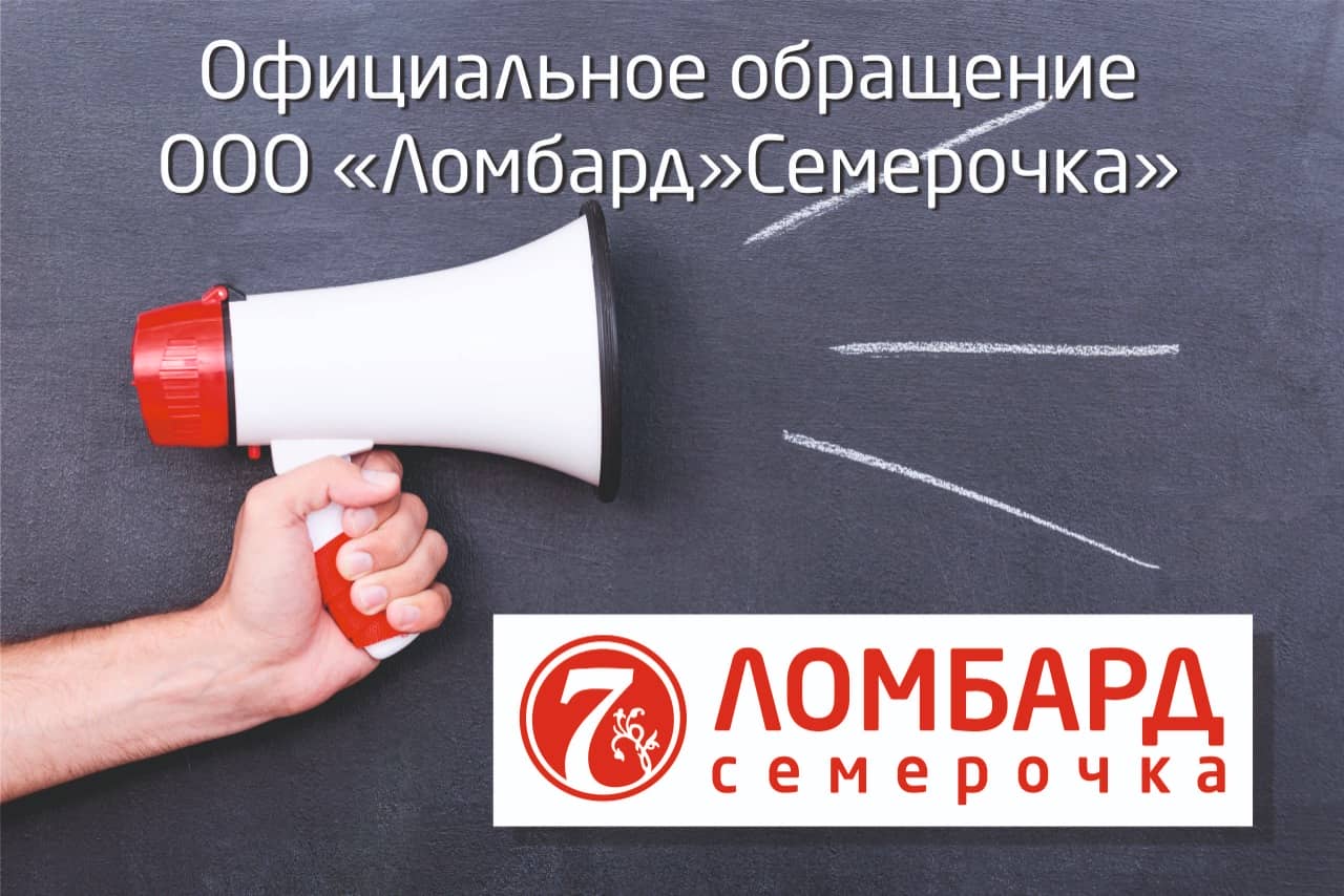 Официальное обращение от ООО "Ломбард" Семерочка"