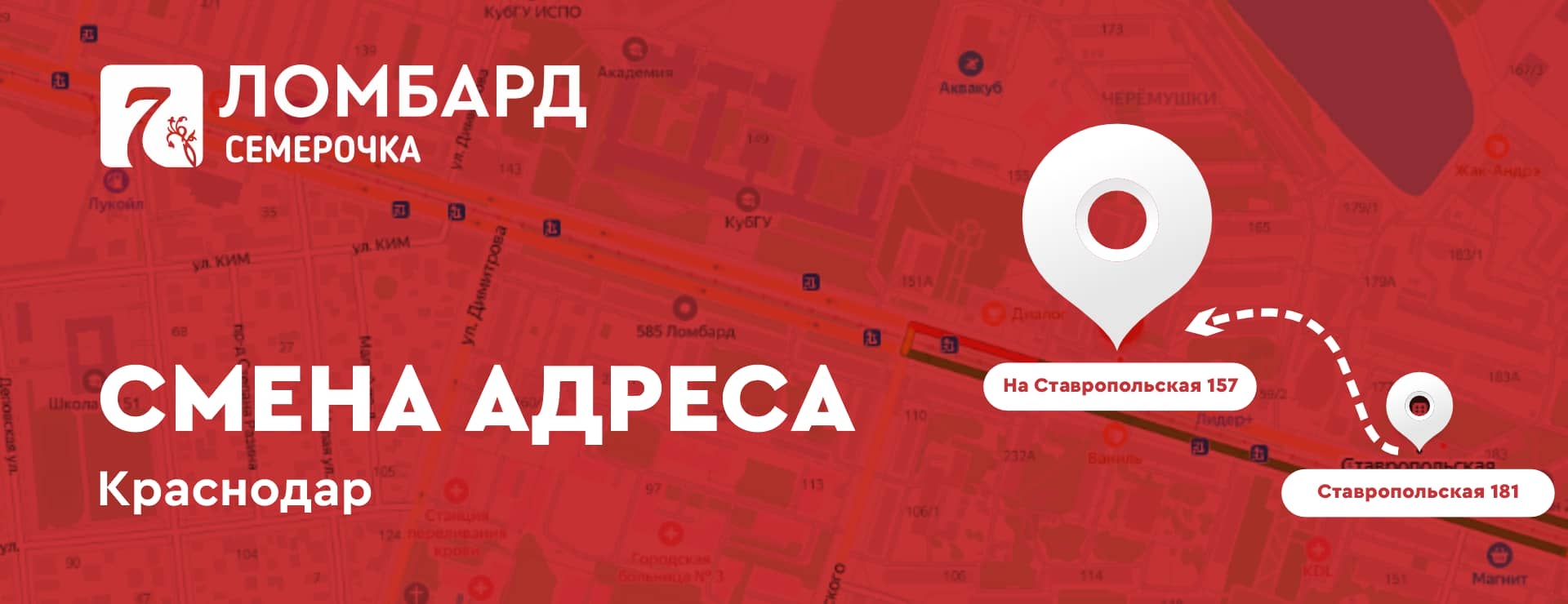 Переезд отделения ломбарда “Семерочка” в Краснодаре: с ул.Ставропольская 181 на ул. Ставропольская 157
