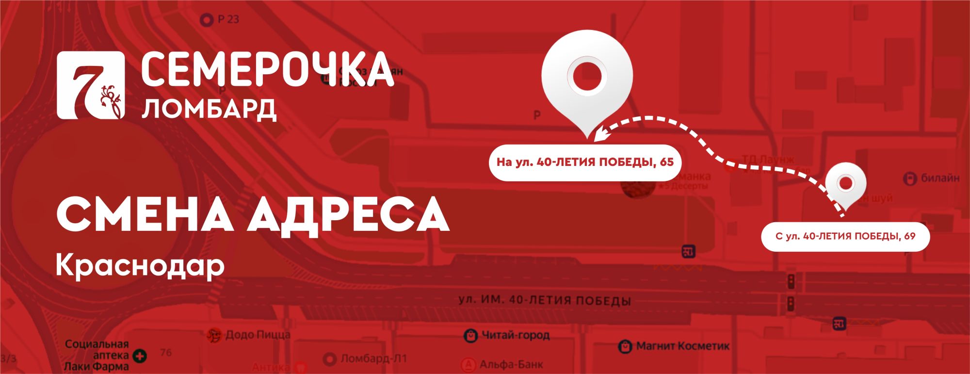 Переезд отделения с ул. им. 40-летия Победы, 69 на , ул.им.40-летия Победы, 65.