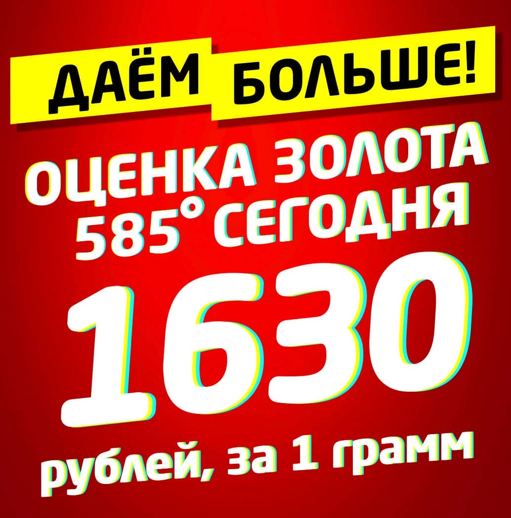 У нас очень хорошие новости! Мы увеличили стоимость оценки золота. Теперь оценка за 1 грамм 585 пробы 1630 рублей. Так же увеличена оценка и для изделий других проб. Для удобства расчета, воспользуйтесь нашим онлайн калькулятором.